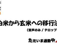 今回の只今通勤中のタイトルは「白米から玄米への移行」です。 玄米が体い良いのは分かってるけど・・・。 という人が多いですね。 私も玄米を進めても、皆さんなかなかハードルが高いようです。 私はこれで100%玄米に移行出来ま […]
